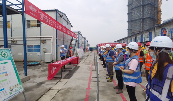 6月1日,中国十七冶集团有限公司江苏分公司在南京农业大学江北新区项目部举办安全生产月启动仪式,分公司领导班子成员、各职能部门负责人、项目部全体管理人员以及劳务人员参加启动仪式。