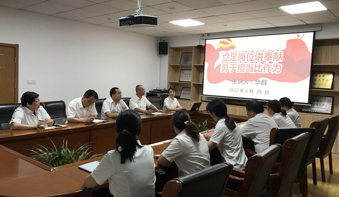 公司党委书记华群在第一党支部以“立足岗位讲奉献,勇于担当比作为”为主题讲授党课,从新时代对党员的新要求、立足岗位讲奉献、不忘初心使命永葆政治本色等方面进行授课,要求党员们传承发扬“讲奉献有作为”的精神力量,敢于担当、勤于工作、乐于奉献,发挥党员先锋模范带头作用,成为企业发展的核心力量。