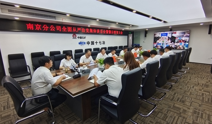 8月9日下午,中国十七冶集团南京分公司召开集体谈话暨警示教育大会。分公司领导班子成员、机关各部门负责人及有关人员,各项目经理部领导班子、项目办公室人员共59人参加会议。会议以“主会场+视频分会场”形式召开。
