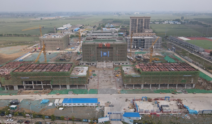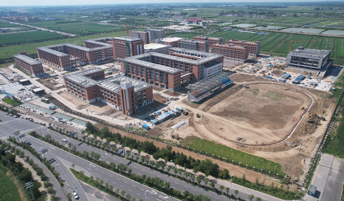 灵璧县技工学校项目由封闭转为半封闭管理,用工来源由均为现场居住人员逐步放开至所有低风险区人员,项目部在对现场的严格管理下实现有序复工。复工前,项目部安全部组织人员对现场安全隐患做了一次全面排查,特别是特种设备和用电方面进行反复复核,并组织全体人员重新进行三级安全教育和安全交底,确保现场施工安全进行。针对现场工期紧、任务重、疫情防控形势依然严峻的现实问题,工程部和技术质量部对全体施工人员实行“入场即交底”制度,在复工前对大班组进行统一交底,对后续进场人员实行先交底,再进场,全力保障现场施工质量和进度。目前四栋宿舍楼即将完工交付,综合服务中心与图书馆综合楼进入装饰装修阶段,竞技中心与培训中心主体结构施工完成70%。