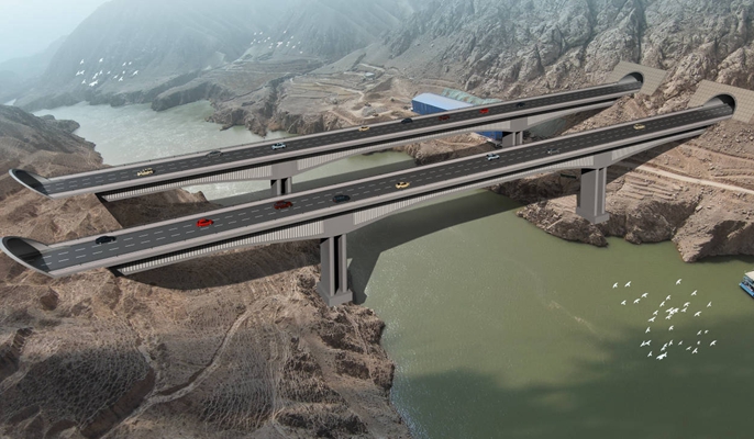 什川黄河特大桥前后连接大河坪、上河坪隧道,是连霍高速公路兰州清忠段扩容改造项目控制性工程、全线亮点工程之一。其主跨160米横跨黄河,桥型布置为(90+160+90)米三跨预应力混凝土波形钢腹板连续刚构,左幅桥长350米,右幅桥长349米。桥梁主梁采用单箱单室变截面波形钢腹板预应力混凝土连续箱梁,主墩采用双肢实体墩,下部基础采用承台接群桩基础。其中,大体积混凝土承台共有四个,单个尺寸为(13.20×13.20×4.50)米,钢筋用量71.9吨,C30混凝土设计方量784立方米。作为首个大体积混凝土承台,为确保大桥工程顺利开局,项目部严格把控各道工序。