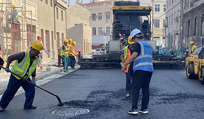 为确保工程进度,按时保质地完成节点计划,项目部从大局出发,统筹协调,安排德县路芝罘路两条道路同时施工,同时调用沥青摊铺队伍、路面石材铺装组,电力管道施工和排水管道施工队,密切配合,有条不紊地进行施工,力争实现2022年10月8日之前芝罘路、德县路道路施工完成。