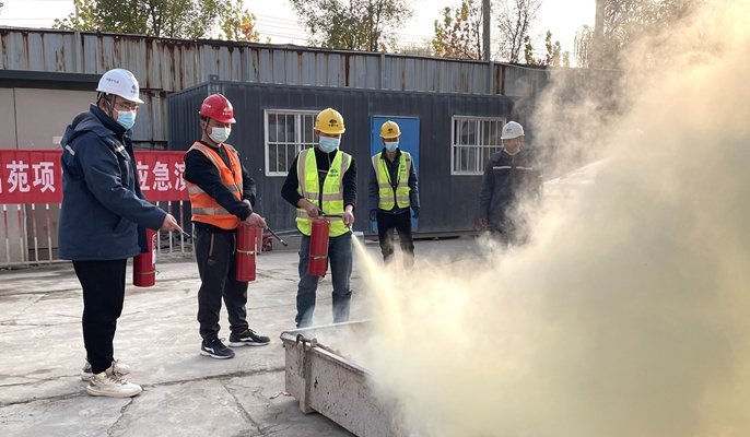 活动首先由消防应急演练总指挥进行消防安全知识宣讲,主要围绕工地上常见的火灾隐患、消防安全隐患的排查治理、消防器材的正确使用方式、如何扑救初期火灾和开展火场逃生等三个方面进行了详细的讲解。宣讲完毕后,参演人员到达指定地点,按照计划开展消防疏散应急演练。演练模拟了22号楼一层作业人员违规吸烟,引燃堆放的模板材料导致火灾的情况。“起火了!快来人!”…现场参演人员大声呼救,项目部在接到事故报告后,立即启动火灾事故应急救援预案,实施人员疏散和现场灭火,最终“火灾”被成功扑灭。演练过程环环相扣,反应迅速,处置得当。