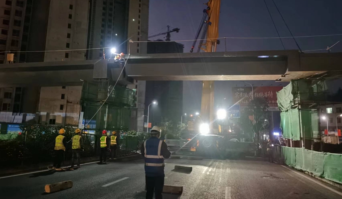 贵州息烽御山邸项目人行天桥钢箱梁吊装完成
