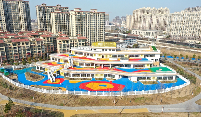 本项目是固镇县重点民生教育工程,占地面积约8763平方米(约13.1亩),总建筑面积6900平方米,计容建筑面积6119平方米。建筑地上总建筑面积6556平方米,地下建筑面积350平方米。工程周边环湖、草木翠绿、环境优美,整体结构色彩艳丽、明亮大方、窗明几亮,能够很好满足当地学前儿童学习娱乐需求。