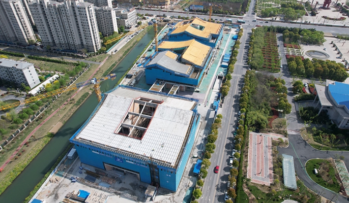 二季度以来,项目全面贯彻落实十七冶“大干二季度、确保双过半”工作会议部署,时刻牢记“安全施工、优质施工、文明施工”的要求,全力推进施工进度。截至目前,博物馆、图书馆、文化馆屋面铝板骨架、屋面采光顶骨架、层间防火隔离带、铝型材立柱满焊施工均已完成;博物馆铝板吊顶钢网片施工完成80%,铝板楼梯骨架施工完成50%;图书馆三层空调盘管机施工完成90%;文化馆样板间石材、墙地砖、吊顶施工完成,报告厅石材干挂骨架施工完成90%。