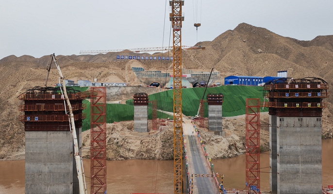 LHQZ-ZB1-3项目位于甘肃省皋兰县及榆中县交界处,由南向北建设大河坪隧道、什川黄河特大桥、什川隧道等。什川黄河特大桥作为项目控制性工程,是全线亮点工程之一,其主跨160米横跨黄河,桥型布置为(90+160+90)米预应力混凝土波形钢腹板连续刚构,左幅桥长350米,右幅桥长349米。桥梁主梁采用单箱单室变截面波形钢腹板预应力混凝土连续箱梁,主墩采用四座双肢实心墩柱,全桥共计8根。此次封顶的双肢实心墩柱为大桥右幅1、2号墩柱,高分别为25米、28米,长宽均为9.75米、1.8米,为承台接群桩基础。
