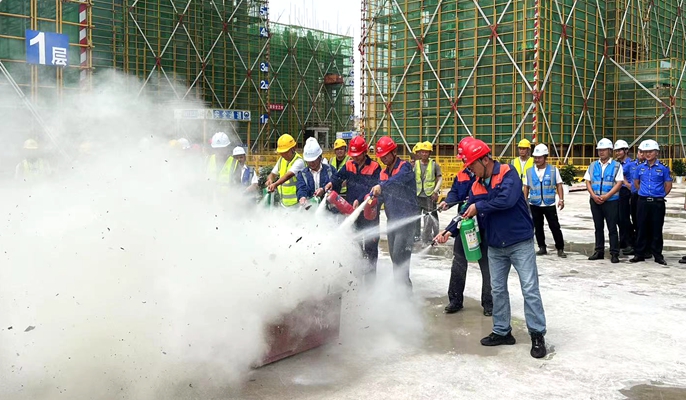 江西科晨研发中心项目消防应急救援演练及相关安全知识培训。演练模拟了施工现场突发火灾,警戒疏散组对事故发生区域进行警戒,严禁无关人员进入,避免发生二次事故;后勤保障组切断电源,发放抢险物资;通讯联络组引导消防车辆和救护车辆,做好路线对接;抢险救援组配合消防队员顺利营救出现场被困人员。随后项目应急救援领导小组结合演练过程中发现的问题和不足进行总结,并对灭火器的正确使用方法、步骤进行讲解及示范。本次应急演练的开展进一步增强项目管理人员和一线劳务工人面对突发事件的应变能力,有效防范各类事故隐患,确保建筑工地施工现场安全有序,为项目高质量建设保驾护航。