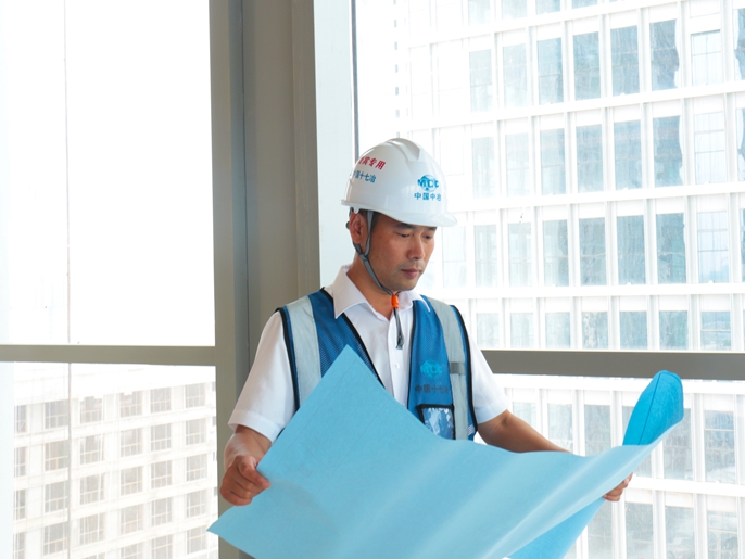 孙则树同志在南阳市火车站广场项目进行室内装饰墙面平整度检查