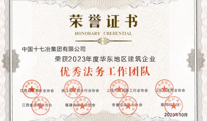此次荣誉是对中国十七冶依法合规经营管理工作的充分肯定。公司将深入学习贯彻党的二十大精神,认真对标行业先进企业,突出强化组织、制度和人才保障,持续提升法务工作支撑保障能力、风险防控能力和合规管理能力,切实筑牢依法治企根基,为企业高质量发展保驾护航。