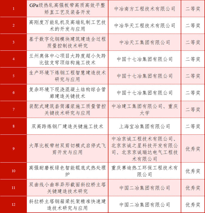 中国质量协会质量技术奖是我国质量技术领域的最高奖,于2005年正式设立,是国内质量技术领域第一个经国家科技部、国家科技奖励办公室批准设立的科学技术奖励,旨在促进我国质量技术进步,提高我国整体质量管理水平、创新能力和竞争能力,调动广大质量工作者的积极性和创造性。近年来,中国十七冶深入践行“五大核心要义”,把创新作为高质量发展的第一驱动力,依托“国家级企业技术中心”等研发平台,建立了“技术创新决策层、科研攻关核心层、工程建设实施层”的技术创新工作架构,形成了“专利工法化、工法标准化”的成果转化体系,并在2023年“国家企业技术中心”评价中位列全国建筑施工行业第2位。公司将持续以实际项目为依托,持续加大技术创新和成果应用力度,为促进建筑行业质量技术进步贡献智慧与力量。