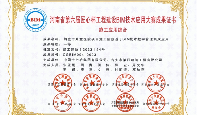 近日,河南省工程建设协会公布第六届“匠心杯”工程建设BIM技术应用大赛结果,中国十七冶甘肃分公司鹤壁儿童医院项目申报的《鹤壁市儿童医院项目施工阶段基于BIM技术数字管理集成应用》成果获评大赛一等奖。