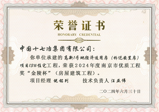 7月4日,南京建筑业协会公布了2024年南京市优质工程奖“金陵杯”项目名单,江苏分公司承建的浦口区高新1号地经济适用房项目13#楼荣登榜单。