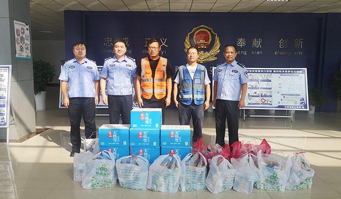 在活动现场,党支部书记向酷暑下坚守岗位的民警们表达敬意,并送上了矿泉水、清凉油、人丹等防暑降温用品,对民警们兢兢业业、勤勤恳恳为项目部建设营造出的良好环境表达了诚挚的谢意,希望民警们在辛苦工作的同时注意保重身体。