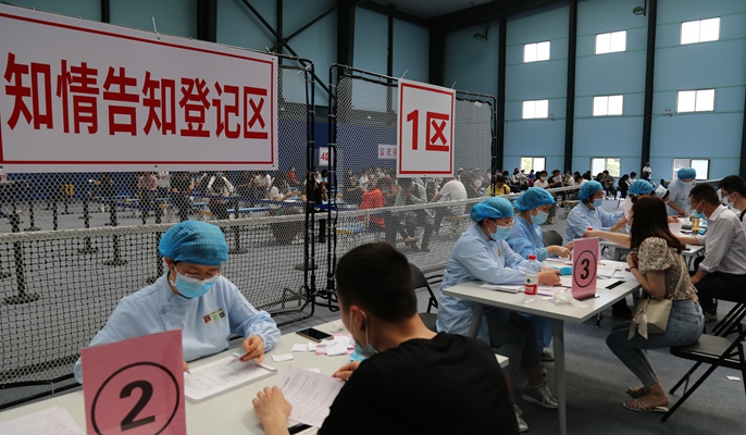 5月10日上午,医院董事长、党委副书记王仲恺,副院长王骥来到雨山区马钢总公司接种点,现场检查接种的各个流程与环节,问候高温下辛勤工作的医护人员。按照接种流程,医院分别设置了登记询问区、信息校验区、接种区、留观区等若干区域,每个区域用隔离带分割独立成块,区域间单向通行,形成科学流畅的接种工作链,确保各流程顺畅,每个区域安全合理、专业高效运行。