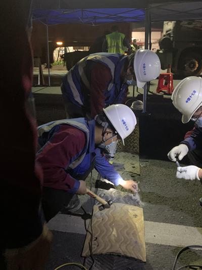 修建结束,天色渐浓。“你们这里没有准备照明灯具吗?”“没有呢,这个站点刚刚建起来,还没来得及配套。”看着防疫工作者用着简易台灯和手电筒辛苦地在黑夜里值守,十七冶的志愿者们决定“顺手”为防疫站点添置一些照明灯具。16日的夜晚温度骤降,顶着凛冽的寒风,小伙子们一寸一寸地将电线嵌装到减速带下,最终为防疫站点点亮了盏盏明灯,不仅照亮着道路,同样也温暖着人心。