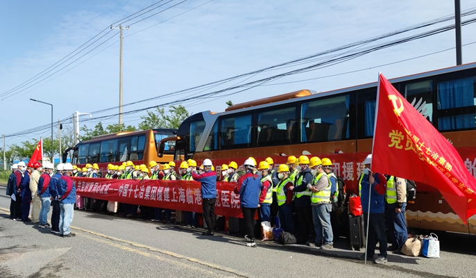 4月15日上午10点,中国十七冶集团冶金分公司第一批前往上海临港方舱医院建设的濮阳支援分队平安抵达上海临港,援建方舱医院建设。