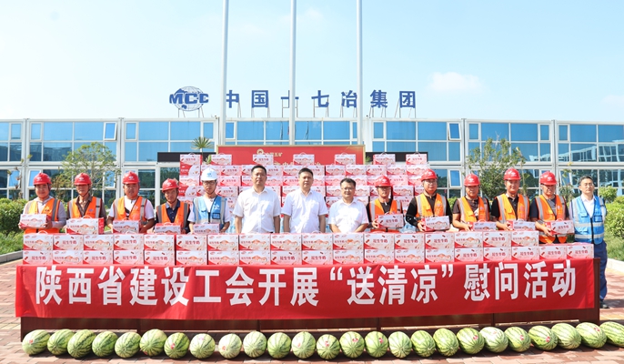 7月20日上午,陕西省建设工会副主席吴昊到中国十七冶集团承建的西安交通大学第一附属医院国际陆港医院项目组织开展“送清凉”活动,为建设一线的广大职工和农民工送去夏日慰问。中国十七冶集团陕西分公司工会主席杨希涛,项目部领导班子成员等参加了活动。