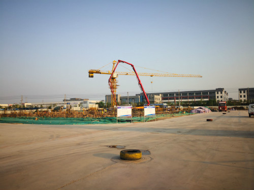 该项目位于江苏省徐州市丰县经济开发区,北苑路以北、创新路以东,包括15栋标准化厂房、1栋研发服务楼和1栋综合动力站及配套工程,项目总用地面积约23.54万平方米,总建筑面积约42.02万平方米。此次浇筑的A1#楼为4层标准厂房,建筑高度23.8米,建筑面积29661.57平方米,本次浇筑的基础承台及地梁浇筑方量约为1000立方米。
