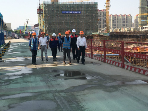 刘安义总经理在施工现场详细了解了工程施工进度、质量、安全文明施工以及塔吊等大型机械使用情况,对项目部管理精细化、标准化、信息化工作给予了肯定,并结合中冶“子企业项目管控主平台建设”的背景和重要意义进行了阐述。刘安义总经理对项目部提出殷切希望,要求项目部继续保持良好运行状态,按照项目管控平台建设要求,科学建立项目管理体系,按照公司“打造主平台,提升项目管理”的要求,贯彻落实实名制、一人一卡等制度,扬长避短,总结经验,提升项目管理水平;安全管理要警钟长鸣,加强全程管控,全面推行标准化管理,打造执行有力的项目管理体系。