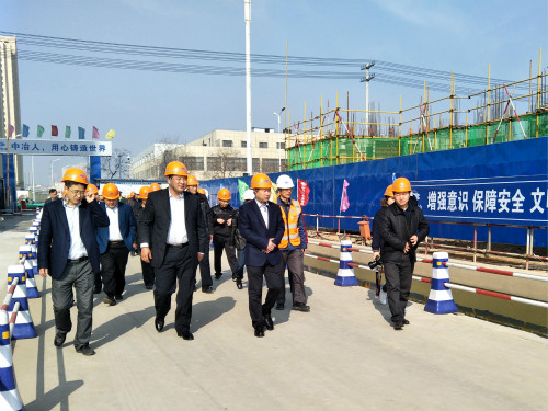 在现场,胡启书区长认真听取了项目部关于绿色文明施工、安全、质量、环保以及扬尘治理成效等工作的汇报,并详细询问了扬尘治理的相关经验和项目在节能、环保方面的具体举措。他对项目部环保工作规范、文明施工措施有力表示赞赏,并希望项目部要继续做好环境治理工作,强化“四节一环保”、标准化施工措施,扎实开展工作,树立良好的央企形象,带动其他施工企业共同为淮北市的环境保护工作做出贡献。