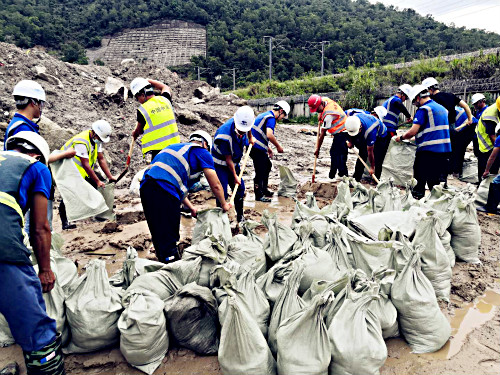 受强降雨影响,深圳海逸村项目基坑内出现大量积水,山体的泥石流汹涌而至,工地附近的山体排洪沟水量暴涨,严重影响到项目施工安全。项目负责人带领项目部全体员工及各协作管理人员30余人于当天上午赶往抢险防汛点,分三组展开各项抢险工作。两个小时的抢险工作,大家用肩抗、用车推,完成大功率水泵架设,并装沙袋500余个对护坡破损处进行填补,圆满完成项目抢险,解除当前施工燃眉之急,坚固防汛防洪主阵地。
