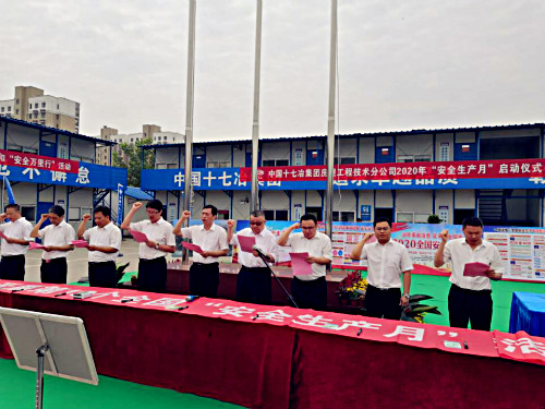 6月1日,中国十七冶集团房屋工程技术分公司“安全生产月”启动仪式在公司银塘三期项目正式启动,十七冶安全环保部部长张杰、房屋分公司安委会全体成员、机关部门负责人,马鞍山片区项目部代表等参加了活动。