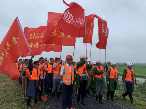 7月16日,马鞍山提升救灾应急响应至Ⅱ级,防汛形势异常严峻。当天下午,中国十七冶集团接到马鞍山市政府紧急通知,和县功桥镇河堤出现险情,牛屯河新桥闸上水位11.75米,超保证水位0.25米,且水位仍在上涨,沿河堤防已发生多处险情。请求立即支援。