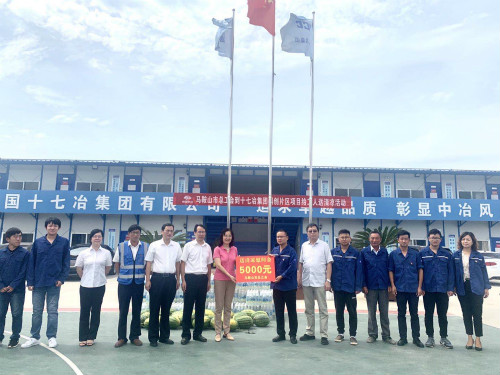 在施工现场,毛善群书记为在高温环境下的职工送去了盐汽水、西瓜等防暑降温物品,对他们不畏高温酷暑、仍旧坚守岗位的精神表示赞扬,并叮嘱大家要合理安排施工和作息时间,确保错峰施工,加强个人健康防护,合理膳食,避免高温作业,预防中暑,同时,毛善群书记对十七冶工会在为职工办实事、谋福利,全心全意为职工服务方面所作的突出表现表示赞扬。