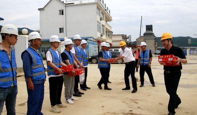 6月9日下午,安徽海螺集团副总经理万涌、海螺集团江西区域主任、弋阳海螺水泥有限公司总经理李国友一行来到中国十七冶集团房屋分公司弋阳海螺项目部,给仍奋战在建设一线的项目部管理人员及作业人员送来关爱和丝丝清凉。