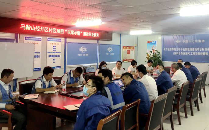 9月30日上午,中国十七冶集团房屋分公司在马鞍山东科半导体项目开展“以案示警”廉洁从业教育,公司纪委书记、副经理曹曙光及马鞍山片区各项目部领导班子成员、关键岗位人员、党员代表参加了学习教育。