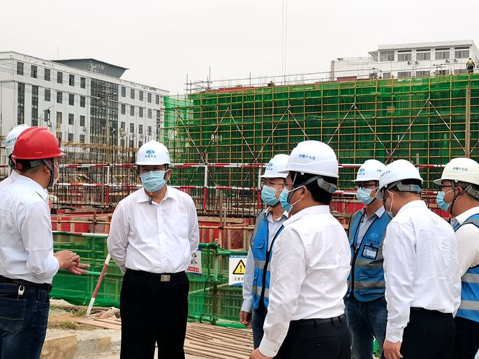 10月9日,安庆市委常委、政法委书记吴捍卫到中国十七冶集团房屋分公司承建的怀宁县高河镇骑龙社区棚户区改造项目调研指导工作,怀宁县政法委书记袁维锡、副县长何盛强等参与调研工作。