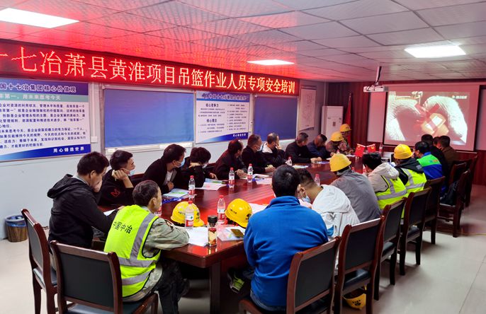 为提高项目施工高处作业吊篮操作人员的安全操作技能,加强高处作业吊篮安全管理,11月6日,中国十七冶集团房屋分公司萧县黄淮棚户区城中村改造一期项目部开展施工高处作业吊篮专项安全知识培训,邀请当地专业培训机构及制造厂商专家进行授课,项目各分包单位吊篮操作人员、项目部安全员参加了此次培训。