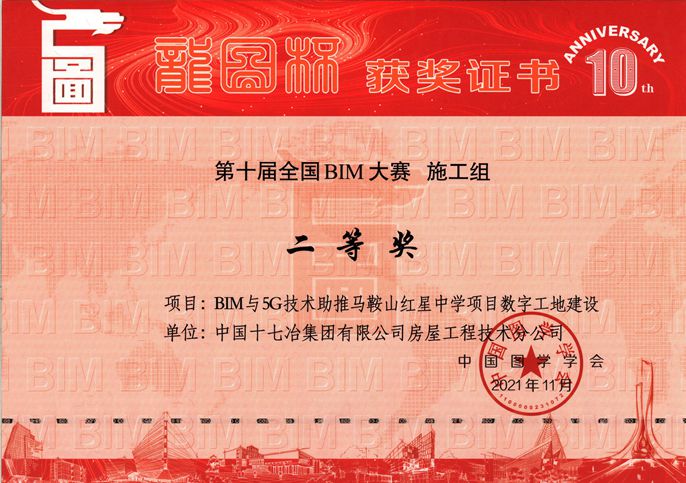 12月28日,中国十七冶集团收到中国图学学会发布第十届“龙图杯”全国BIM(建筑信息模型)大赛组委会颁发的奖状,中国十七冶集团房屋分公司红星中学整体搬迁项目获得二等奖。